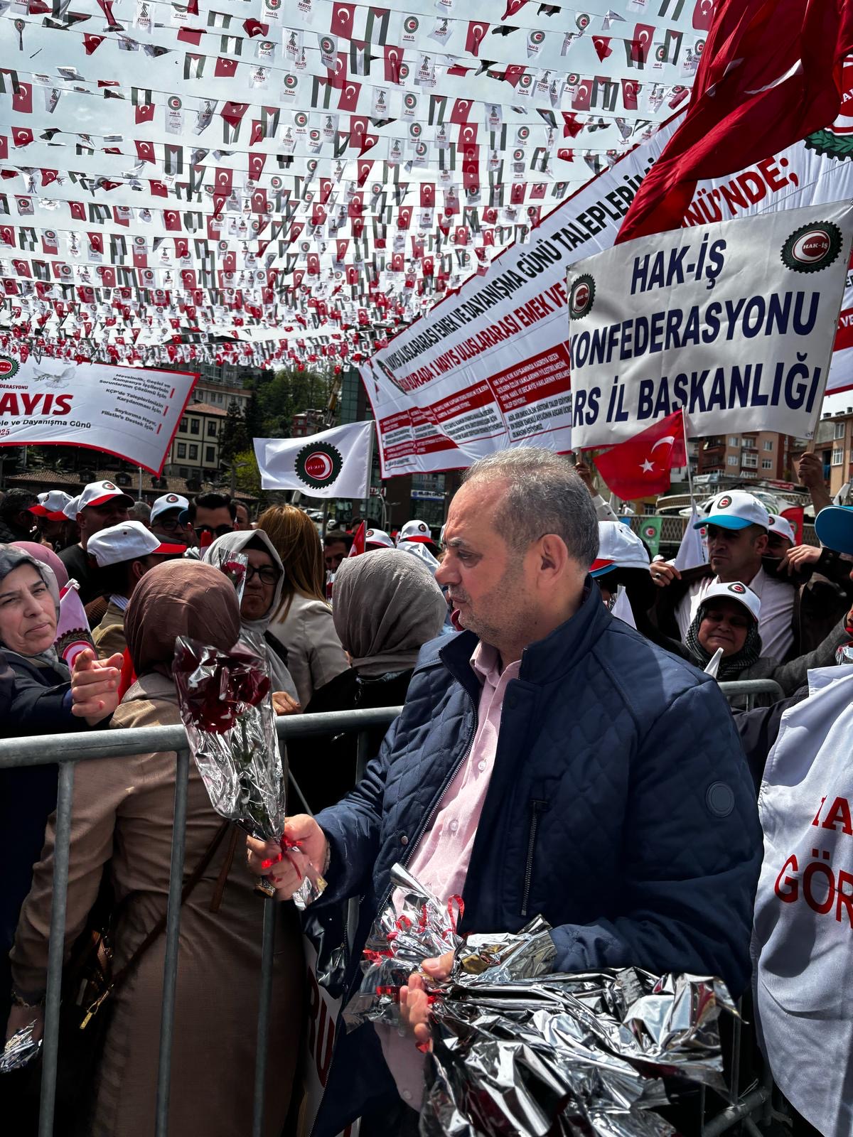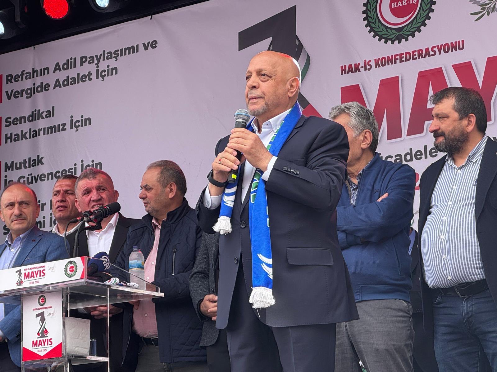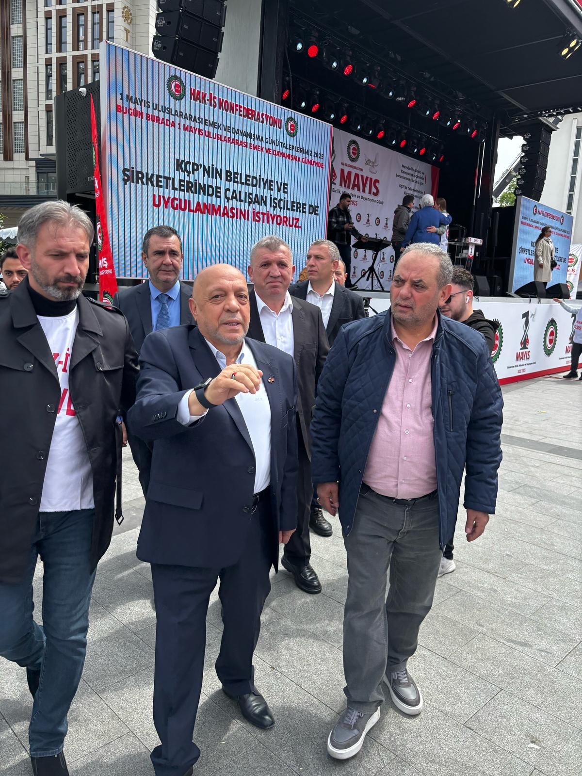 Arslan, “HAK-İŞ olarak 1 Mayıs’ı bazı ideolojik grupların kendi anlayışlarının aracı olarak görmelerine karşı HAK-İŞ emekçilerin, emek hareketinin birliği, dayanışması ve geleceği birlikte inşa etme iradesinin anlamına uygun şekilde Türkiye’nin her köşesinde etkinliklerimizi devam ettiriyoruz. 1 Mayıs bizim için birlik, mücadele ve dayanışma günüdür” ifadelerine yer verdi.