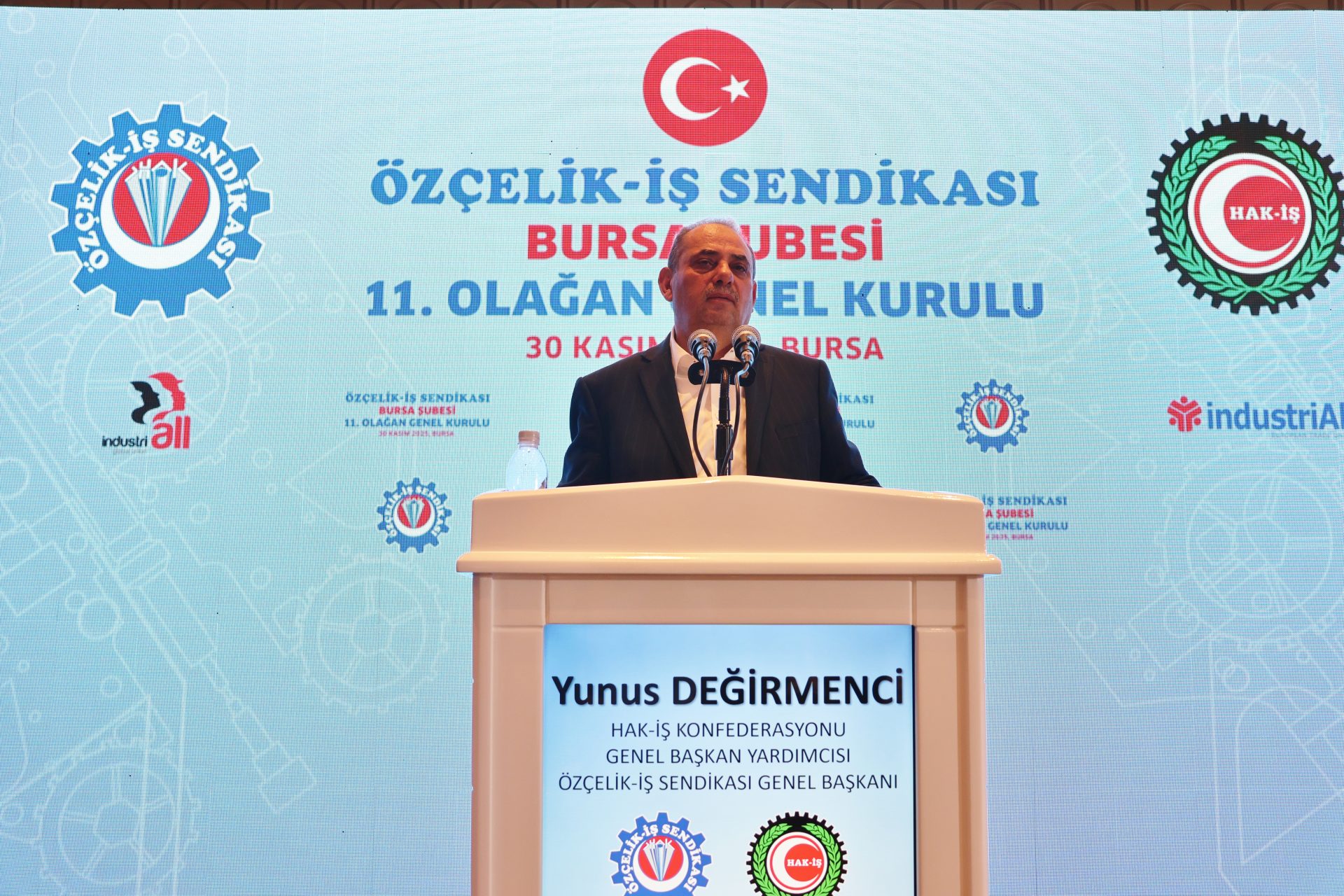 HAK-İŞ Bursa İl Başkanı Mustafa Yavuz ise genel kurulda söz alarak, sendikamızın ve Konfederasyonumuz HAK-İŞ’in çalışmalarına yönelik değerlendirmelerde bulundu.