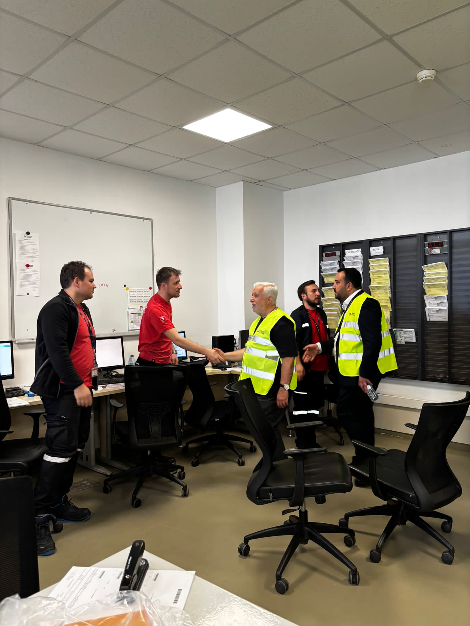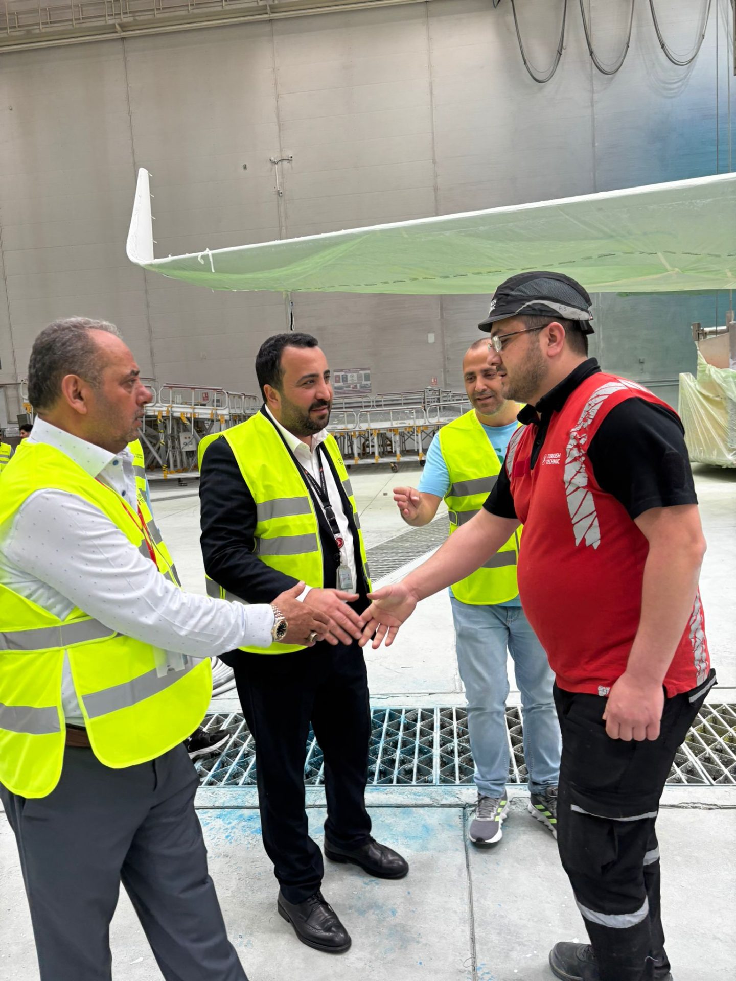 Değirmenci ve Yönetim Kurulumuzu burada da Avrupa Havacılık Şube Başkanımız Ali Bilgin ve şube yöneticilerimiz ile işyeri temsilcilerimiz çiçeklerle karşılayarak, ziyaret boyunca hazır bulundular.
