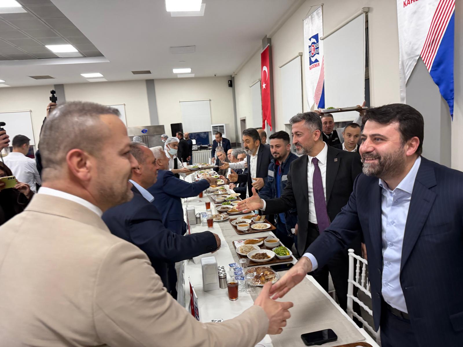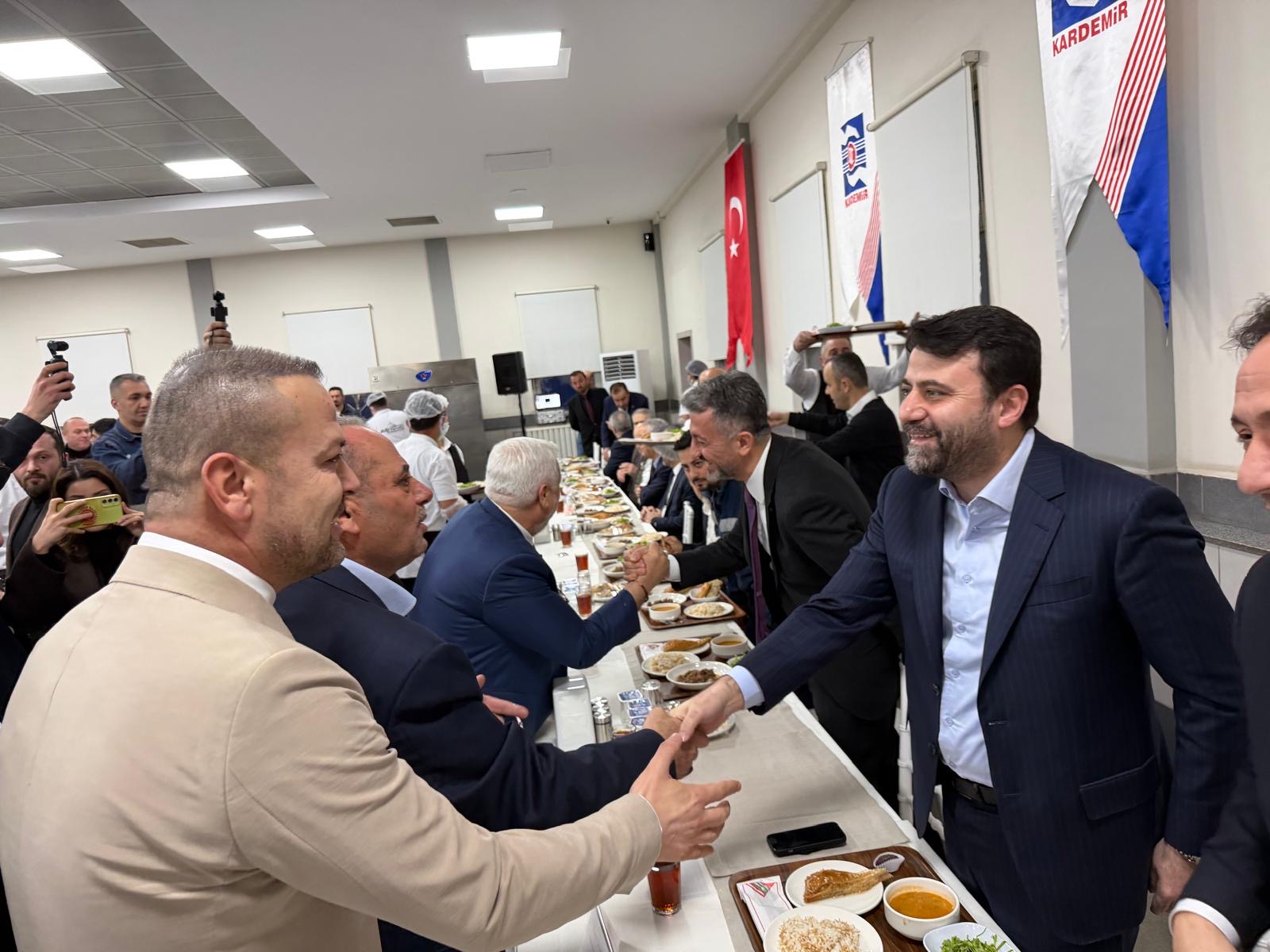 Değirmenci, ‘Gönüllerin Allah’a yöneldiği bu müstesna saatte bizleri bağrına basan, KARDEMİR Yemekhanesindeki bereketli sofralarına misafir eden her bir üyemize ve Karabük teşkilatımıza canı gönülden teşekkür ediyor, misafirperverlikleri için KARDEMİR Yönetim Kurulu Başkanı Sayın Mehmet Ali Oflaz başta olmak üzere KARDEMİR yönetimine, Milletvekillerimizden Belediye Başkanlarımıza ve basın mensuplarımıza kadar Karabük’ün bugününde ve yarınlarında söz sahibi olan tüm yönetim kadrosuna şükranlarımı sunuyorum.’ ifadelerini kullandı.