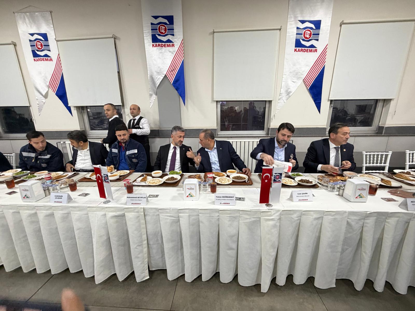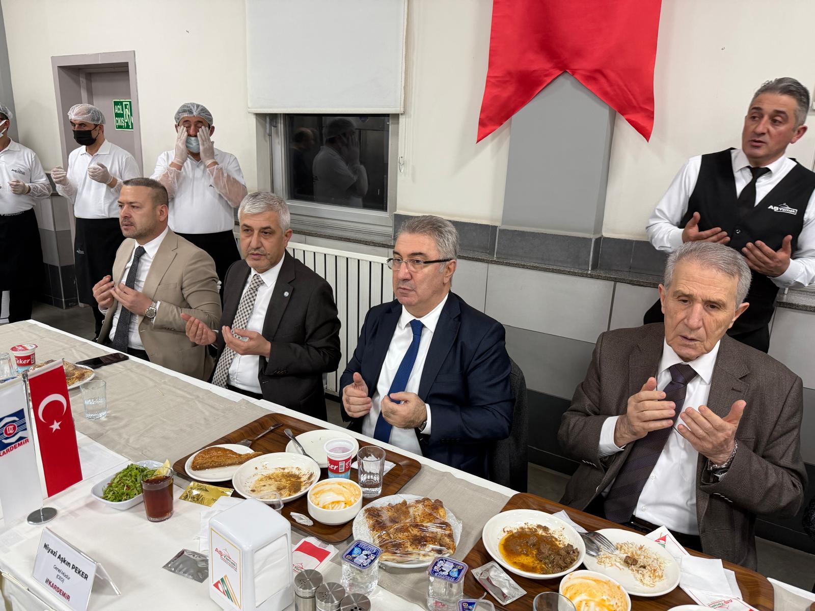Ziyaretlerin ardından KARDEMİR yemekhanesine geçen Genel Yönetim Kurulumuz, burada üyelerimizle ve Karabük protokolüyle birlikte iftar programına katılarak, oruçlarını açtı.