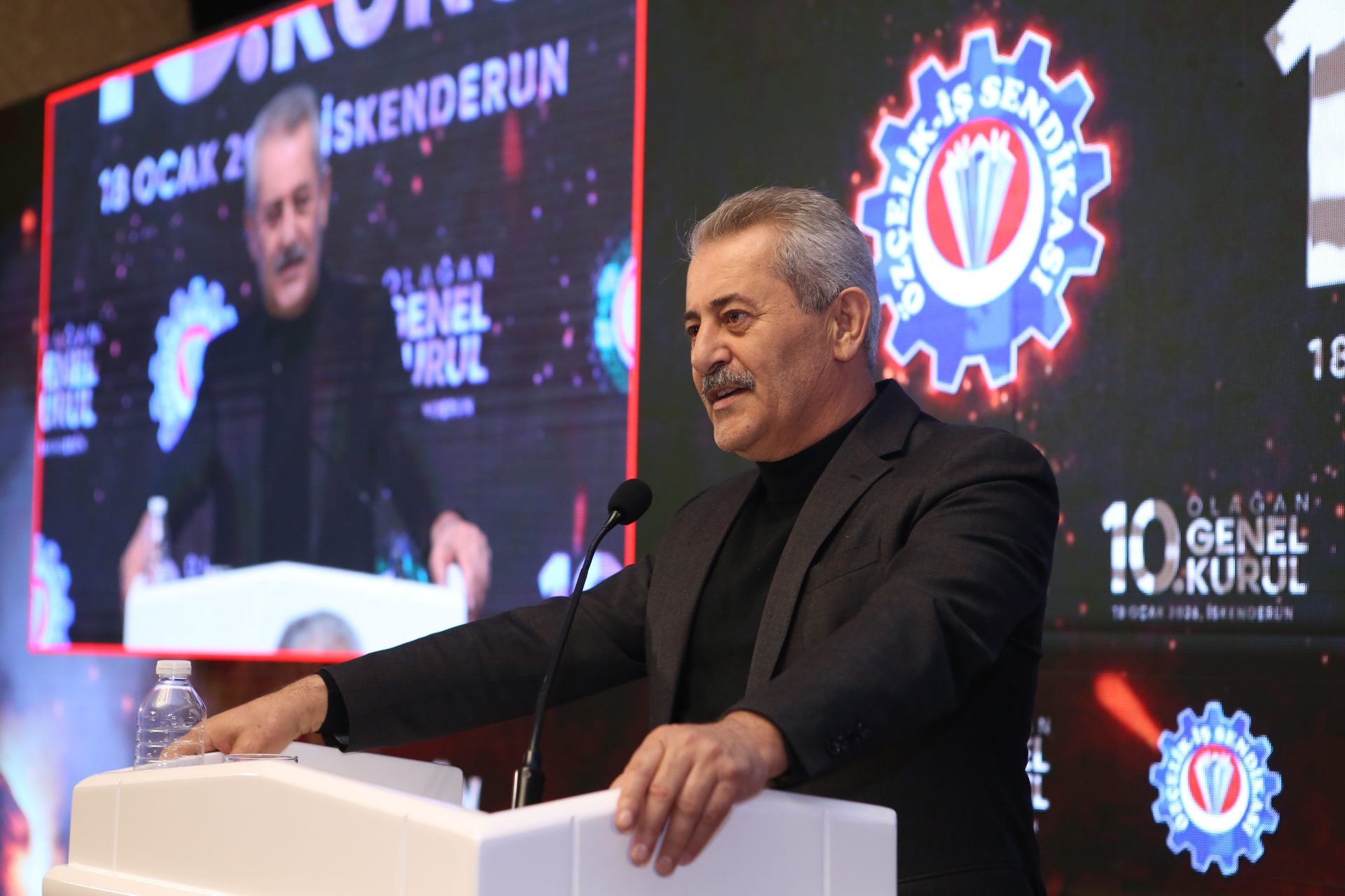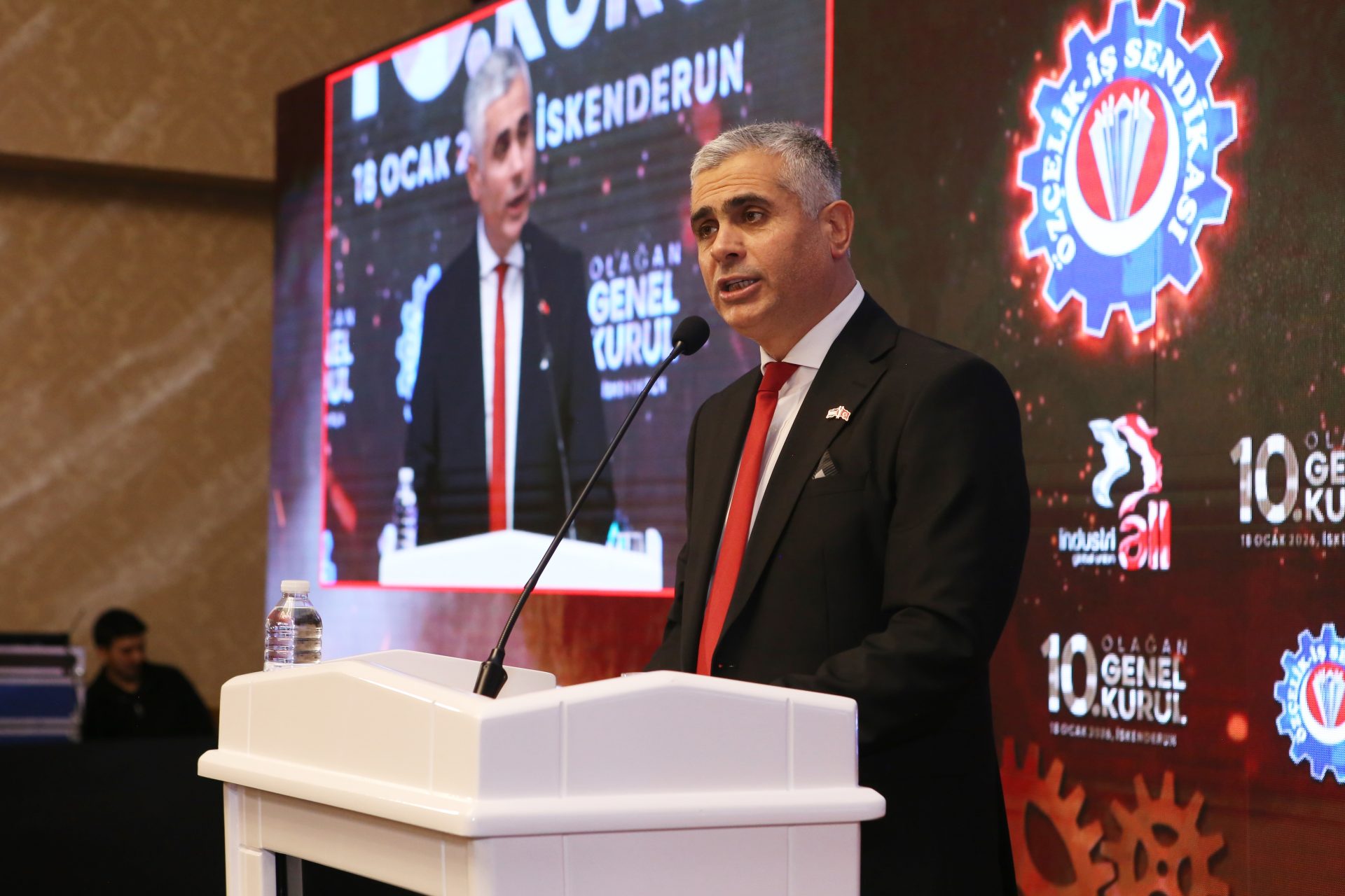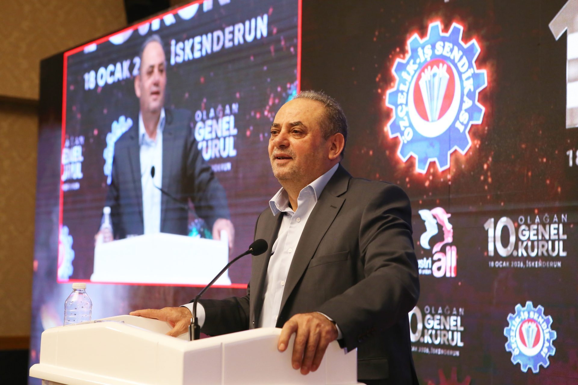 “İskenderun bizim evimiz, bu bölgenin emekçisi de bizim başımızın tacıdır. Bu bölge, sendikamızın geçmişidir, hafızasıdır, aynı zamanda aydınlık geleceğidir. Bu bölgede, çok büyük mücadeleler verdik. Bu bölgede, kan içtik ama kızılcık şerbeti dedik. Bu bölgede, zehri de bal eyledik. Bu bölgede, nice işler başardık, nice emekçinin gönlüne girdik. Bizler göreve geldiğimizde, özellikle İSDEMİR’de tam bir kaos ve kargaşa ortamı vardı. O dönem işverenlerle gereksiz büyük kavgalara tutuşulmuş, işçinin sendikaya olan güveni derinden sarsılmış vaziyetteydi. İSDEMİR’de yetki kaybedilmiş, sendikanın İSDEMİR’de kalesi varsaydığımız Baştemsilcilik binası yıkılmıştı. Fabrikadan içeri girmek için, önce güvenliğe dert anlatmak gerekiyordu. OYAK, verdiğimiz selamı bile almaz olmuştu. O dönem, kendini sendikacı sanan kibir abideleri yüzünden, nice işçi ekmeğinden olmuştu. Artık viraneye dönüşmüş bir de şube binası vardı. Velhasıl, hiçbir sendikacının istemeyeceği bir ortamı, kucağımızda bulmuştuk. Bizler zora taliptik. Besmelemizi çektik, kollarımızı sıvayıp abdestimizi aldık, niyetlerimizi tazeledik, büyük bir iman ve inançla yola revan olduk.