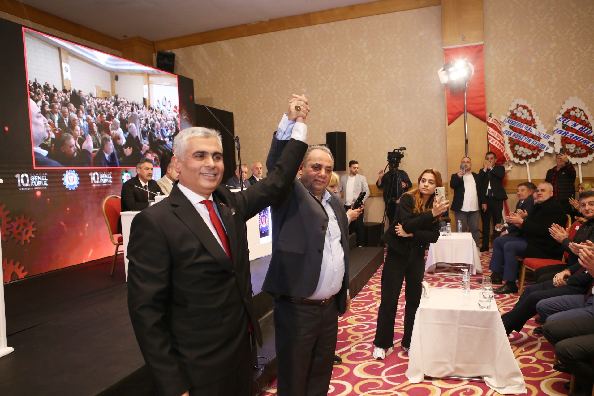 Genel Kurulun yapılacağı salona gelen Genel Başkanımız Değirmenci ve Genel Yönetim Kurulumuz, teşkilatımız ve delegeler tarafından konfetiler ve meşaleler eşliğinde “Yunus Başkan nerede biz oradayız”, “İşçi sendika omuz omuza” sloganlarıyla karşılandı.