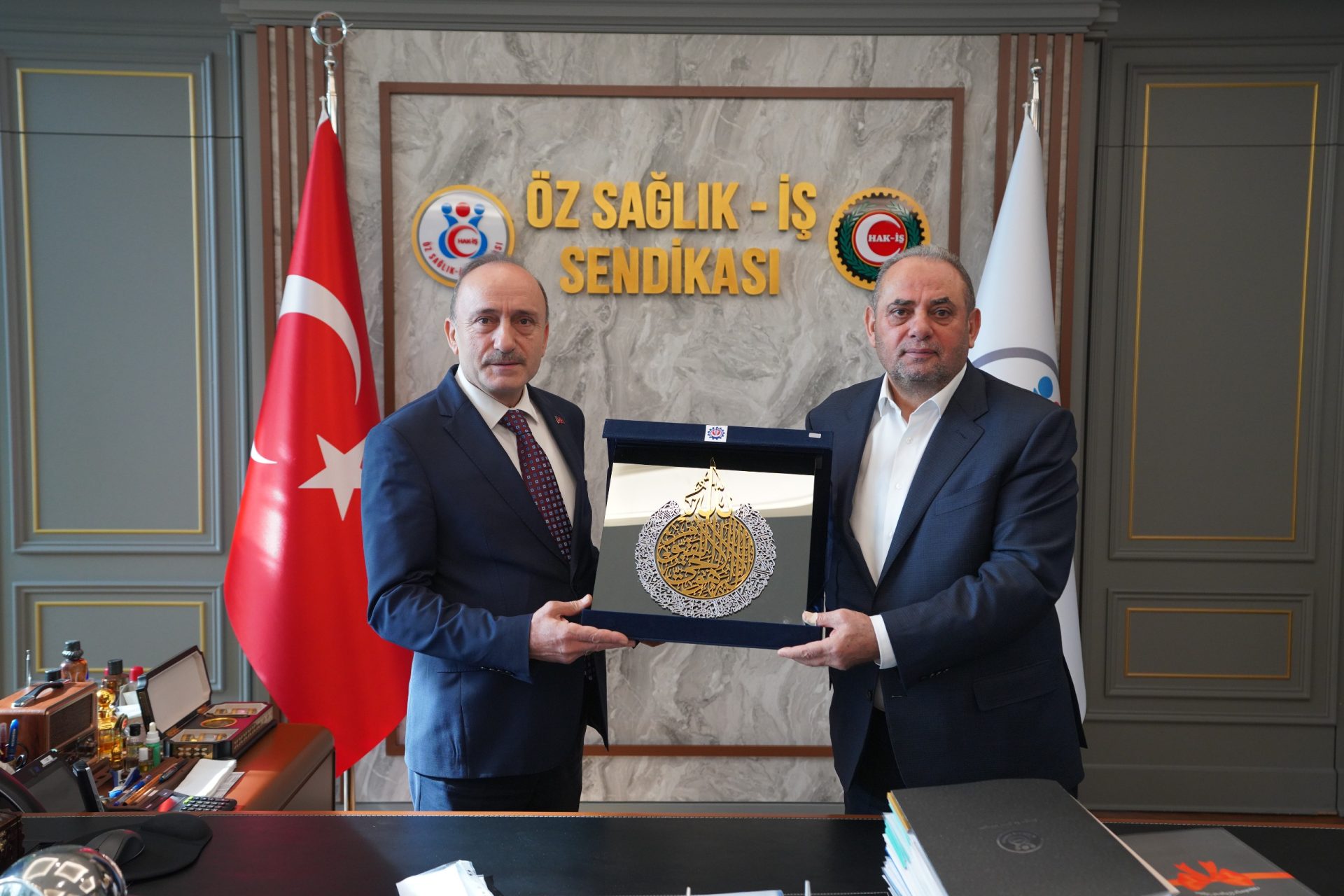 İlk olarak HAK-İŞ Genel Başkan Yardımcısı ve Sendikamızın Genel Başkanı Yunus Değirmenci, HAK-İŞ Genel Başkanı Mahmut Arslan ile birlikte Öz Sağlık-İş Genel Başkanı Devlet Sert ve yönetimini ziyaret etti.